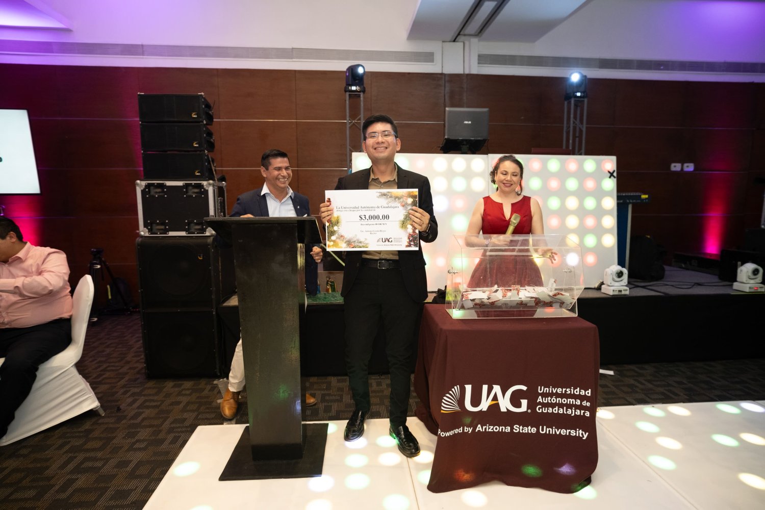 El cierre del evento estuvo marcado por la rifa de regalos y una animada fiesta, donde los colaboradores compartieron momentos de convivencia sin distinción de departamentos, consolidando la UAG Campus Tabasco como una gran familia universitaria llena de alegría y compañerismo.
