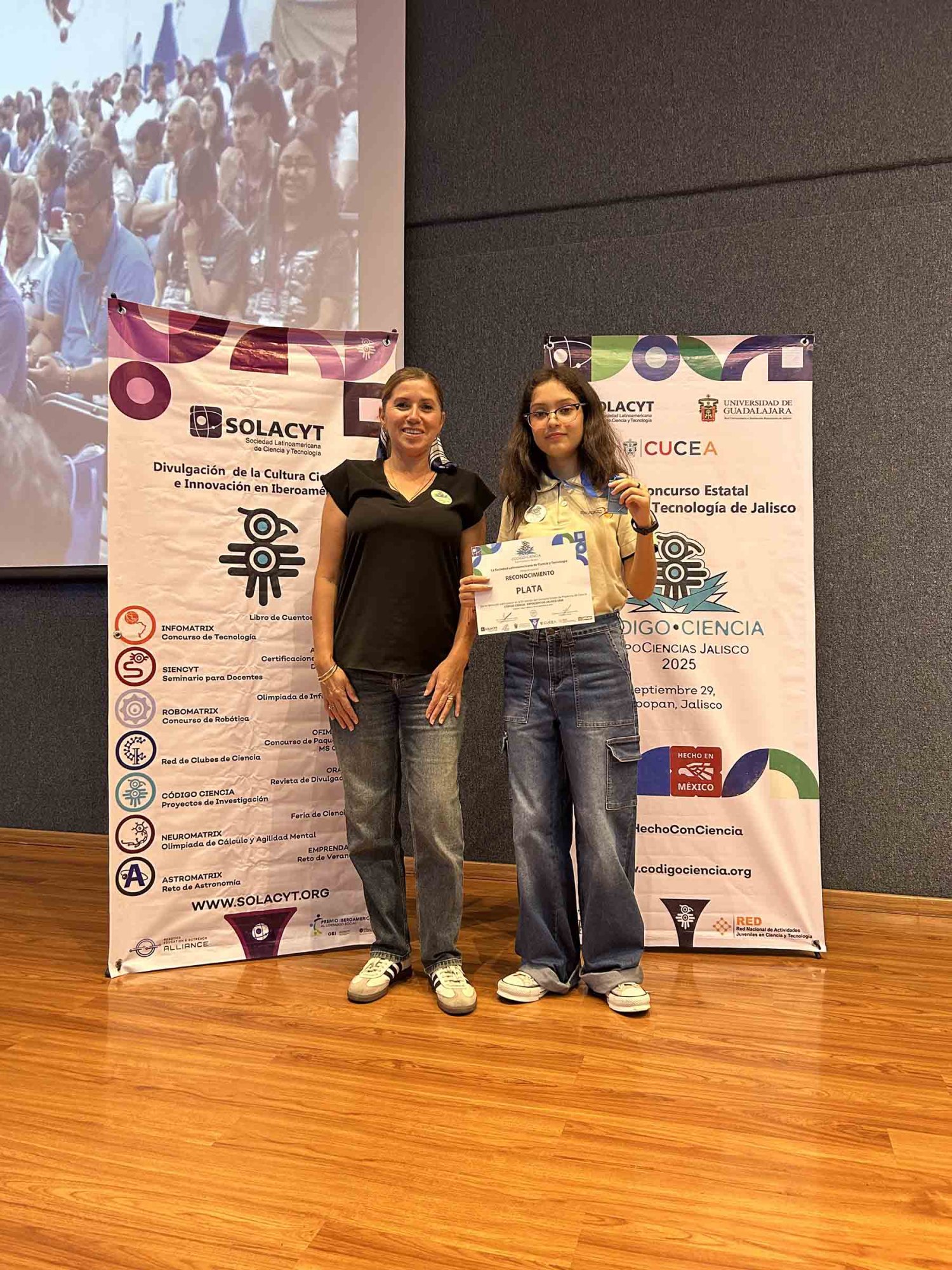 Ximena Yaretzi Estrada Reynoso, alumna del primer semestre de preparatoria de la Escuela Antonio Caso Zapopan, del Sistema Educativo de la Universidad Autónoma de Guadalajara (UAG), consiguió segundo lugar con medalla de plata en la XV Edición del Concurso Estatal de Proyectos de Código Ciencia, Expo Ciencia Jalisco 2025.
