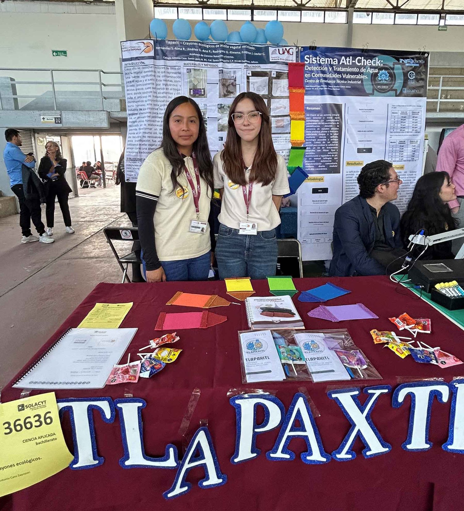 Durante el certamen también se presentaron dos proyectos desarrollados por estudiantes de cuarto semestre de la Preparatoria Antonio Caso. El primero fue “Tlapaxil”, una propuesta de crayones elaborados con aceite reciclado. El proyecto fue realizado por Alma Rosalía Hernández Sánchez y Ana Paula Jiménez Romero.