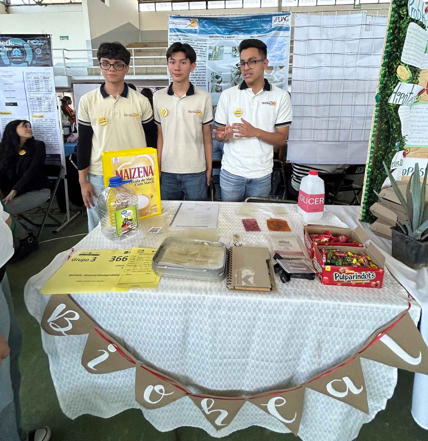Otro de los proyectos presentados fue Parche de Bioplástico, desarrollado por Erik Abraham Herrera García, César Iván Magaña Olvera, Alan Saúl López Sandoval y Emilio Joel Montero Zenteno, estudiantes de sexto semestre de la Preparatoria Antonio Caso.