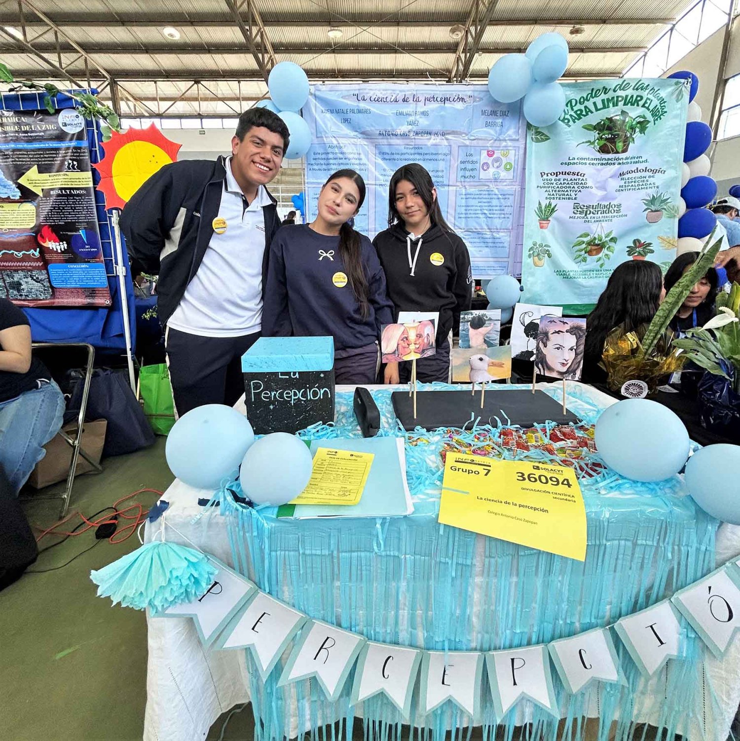 Dentro de las presentaciones científicas también destacó el proyecto La Ciencia de la Percepción, elaborado por Emiliano Ramos Yañes, Ximena Palomares López y Melanie Díaz Barriga, estudiantes de tercero de secundaria.