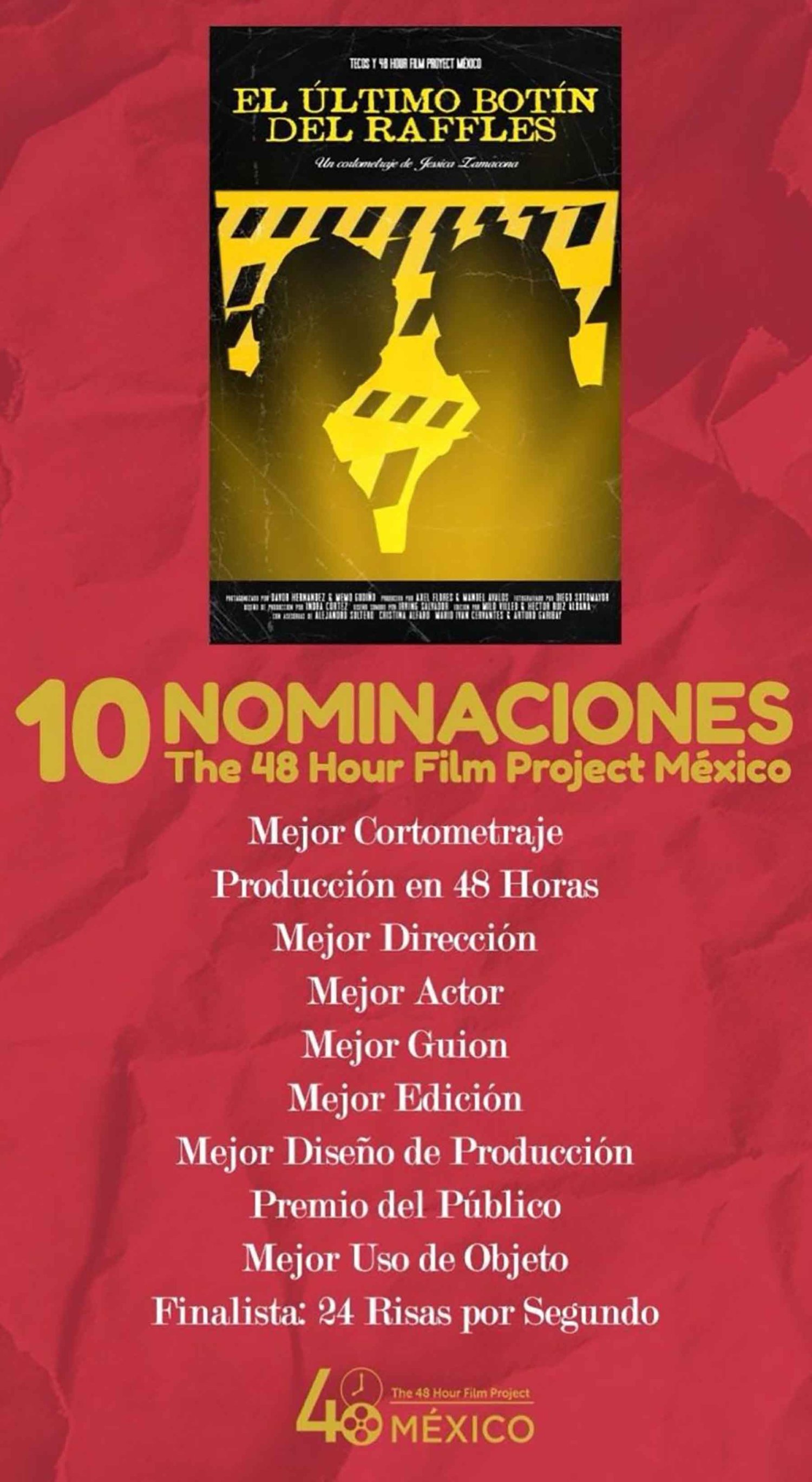 El talento y la creatividad de estudiantes de Producción Audiovisual de la Universidad Autónoma de Guadalajara (UAG) lograron destacar en uno de los retos cinematográficos más exigentes del país: el 48 Hour Film Project México, donde su cortometraje “El Último Botín del Raffles” obtuvo 10 nominaciones de las 21 categorías del certamen, compitiendo contra más de 160 equipos de toda la República Mexicana.
