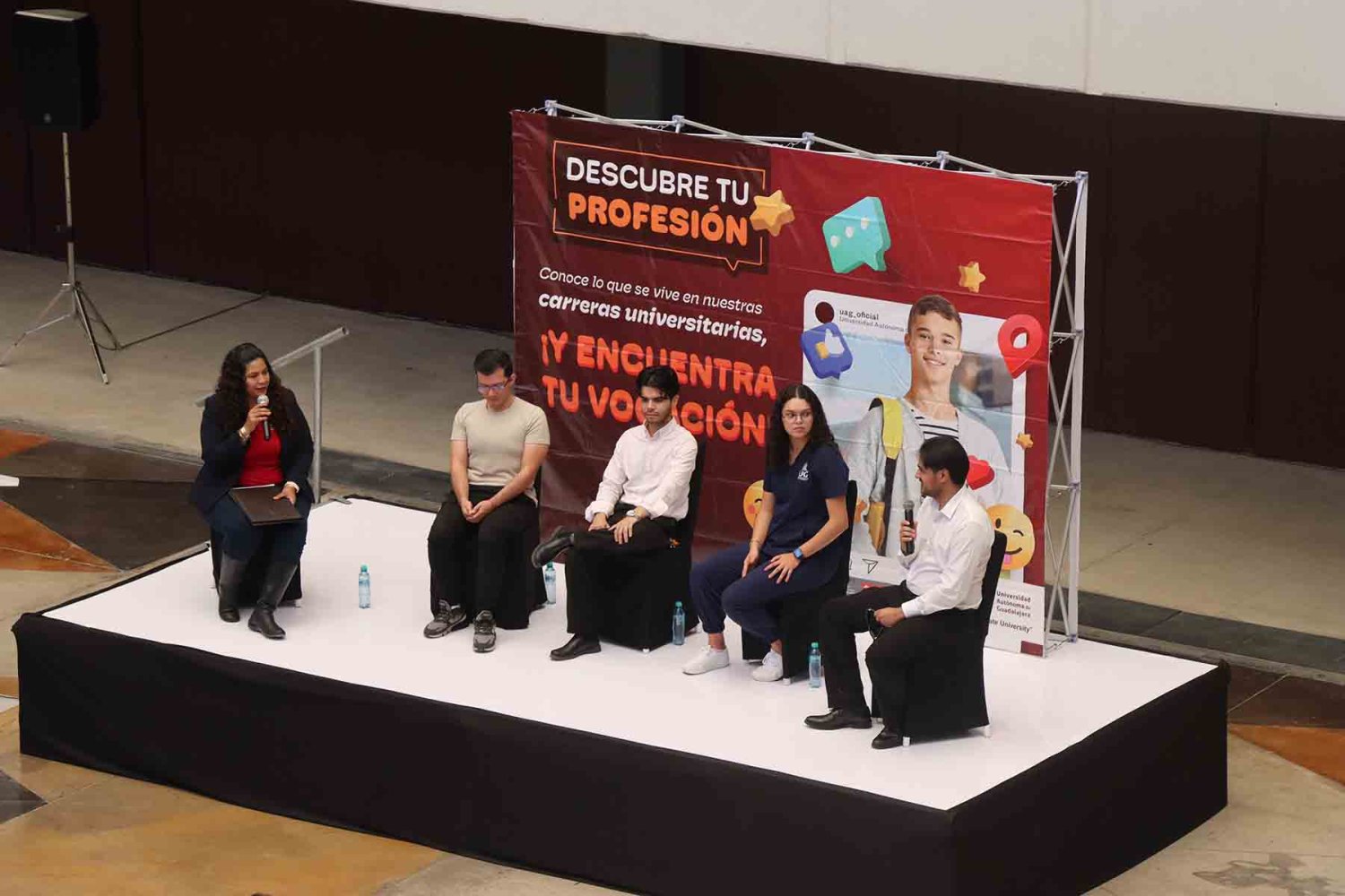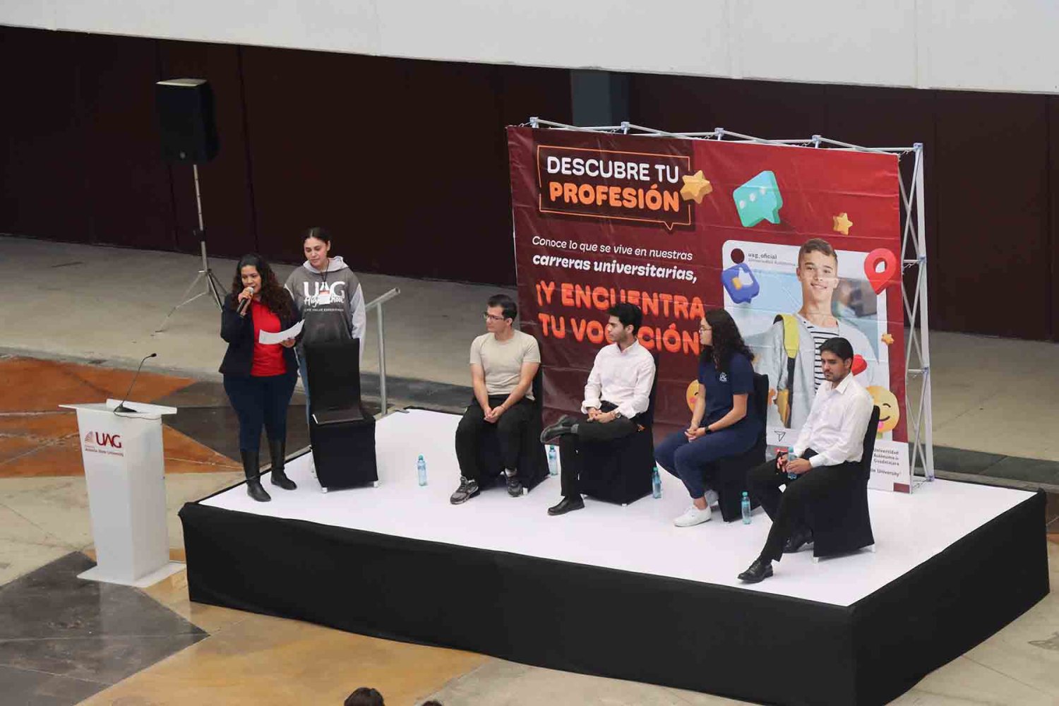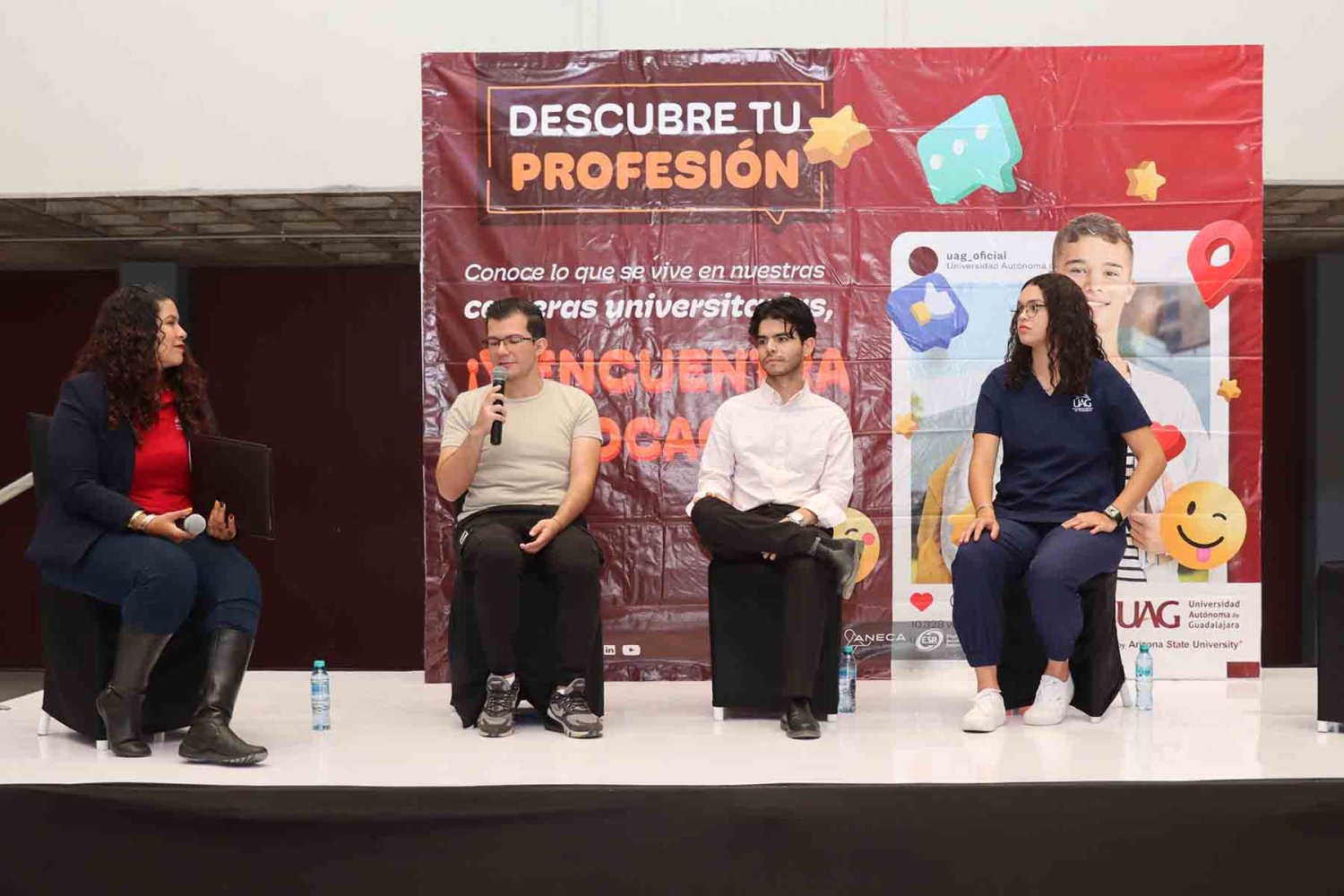 Uno de los momentos más esperados fue el panel con alumnos de distintas licenciaturas de la UAG, quienes compartieron su testimonio sobre la vida universitaria, sus retos y aprendizajes.