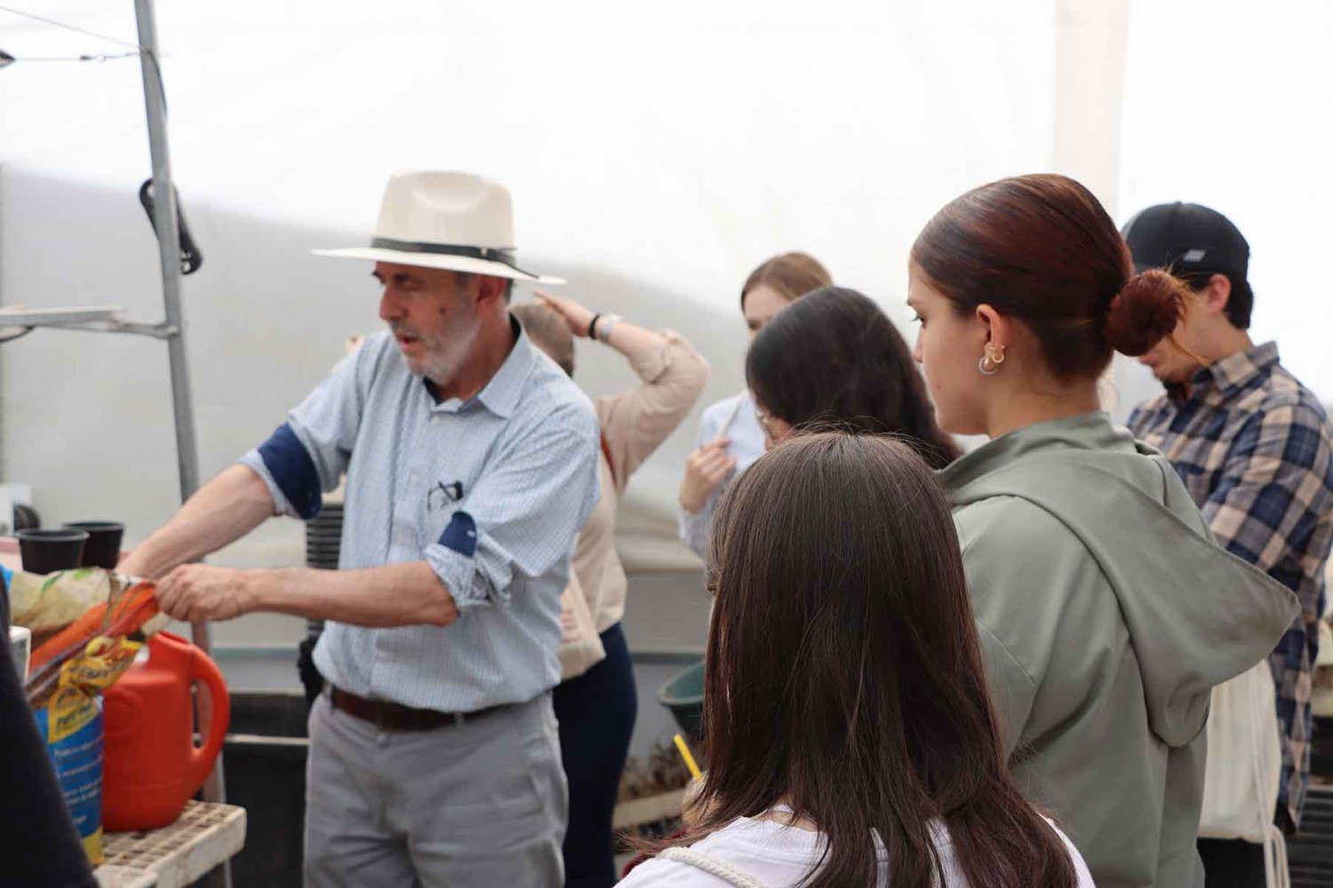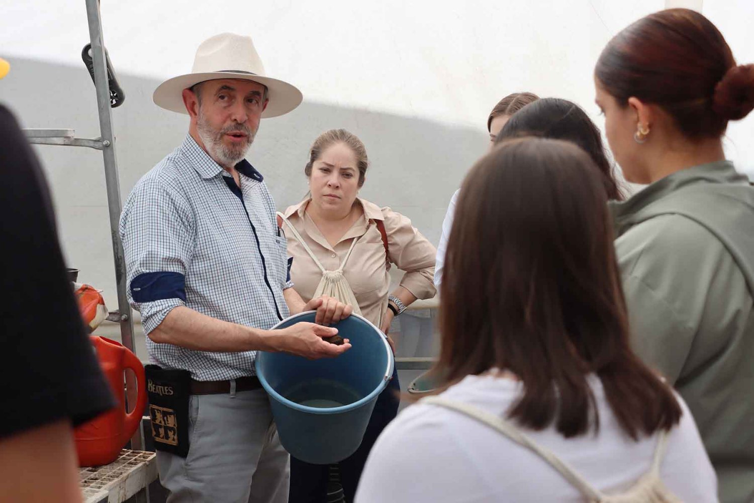 Durante la visita, los asistentes participaron en actividades prácticas similares a las que realizan los estudiantes, como la siembra de brotes de lechuga y dinámicas de manejo animal, entre ellas el lazo de borregos.