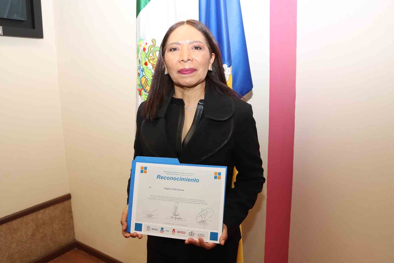 El Gobierno de Jalisco a través de la Secretaría de Salud, entregó un reconocimiento a la Dra. Virginia Ortiz Arrona, Directora del Programa de Enfermería de la Universidad Autónoma de Guadalajara (UAG) y Jefa de Enfermería OPD Servicios de Salud Zapopan.