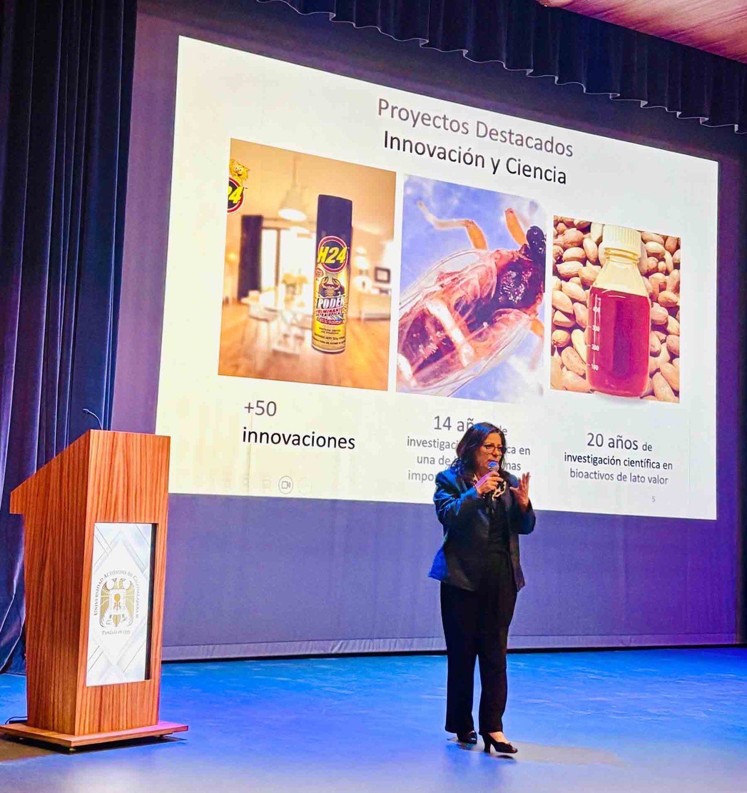 Desde la ingeniería de empaques flexibles, con el Ing. Alfredo Arellano; hasta la innovación en biotecnología, con la Ing. Karla Corona; y la investigación científica verde, presentada por la Dra. Gabriela Esparza, los ponentes mostraron la versatilidad y el impacto profesional de los egresados UAG.